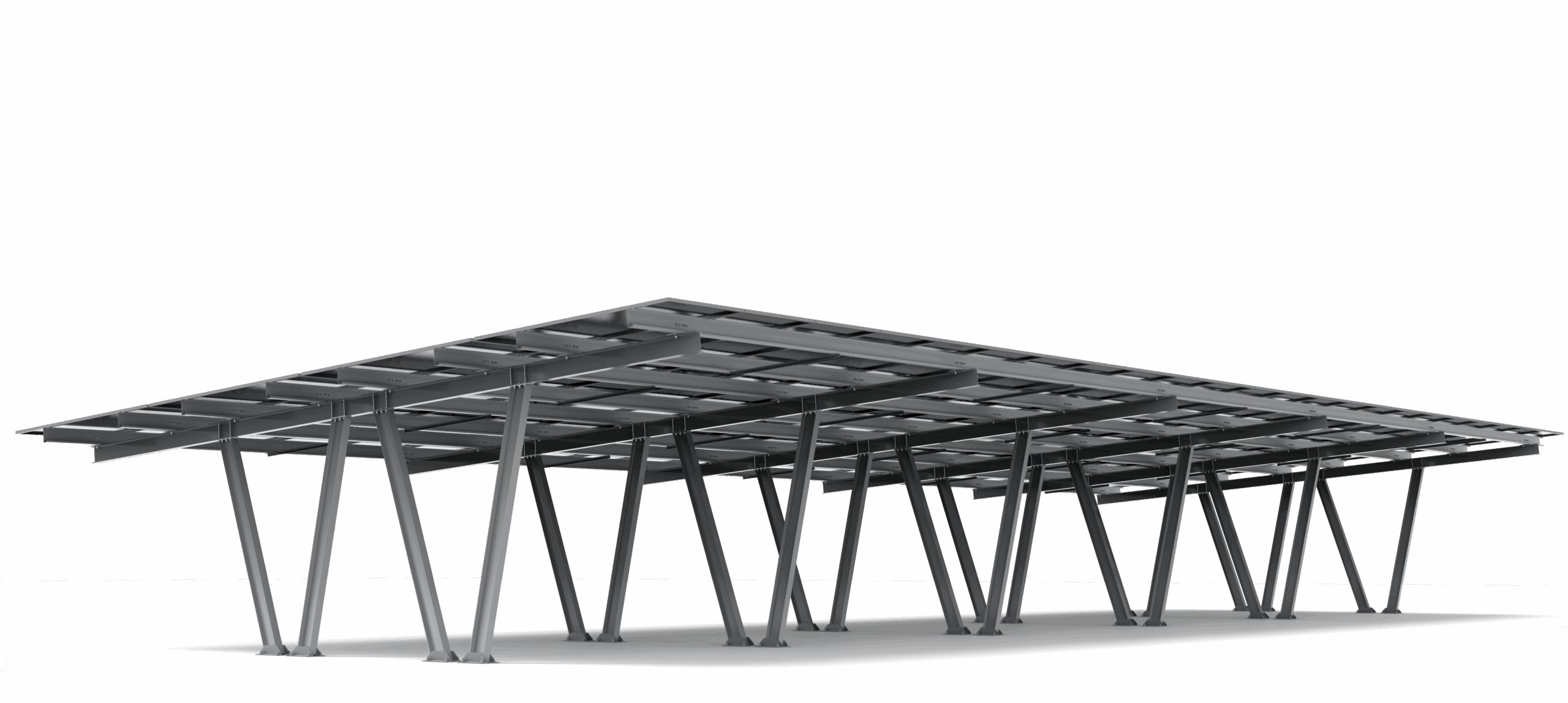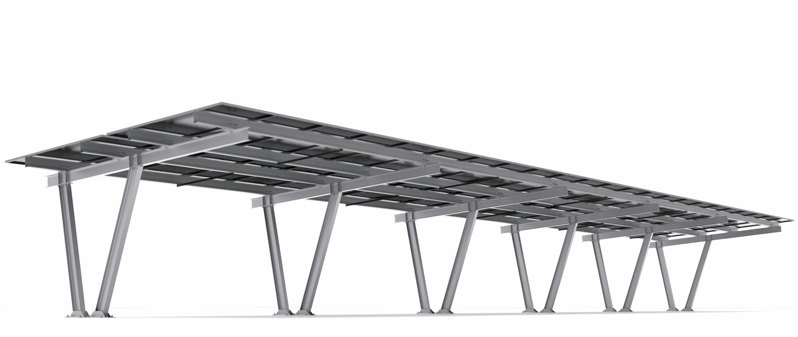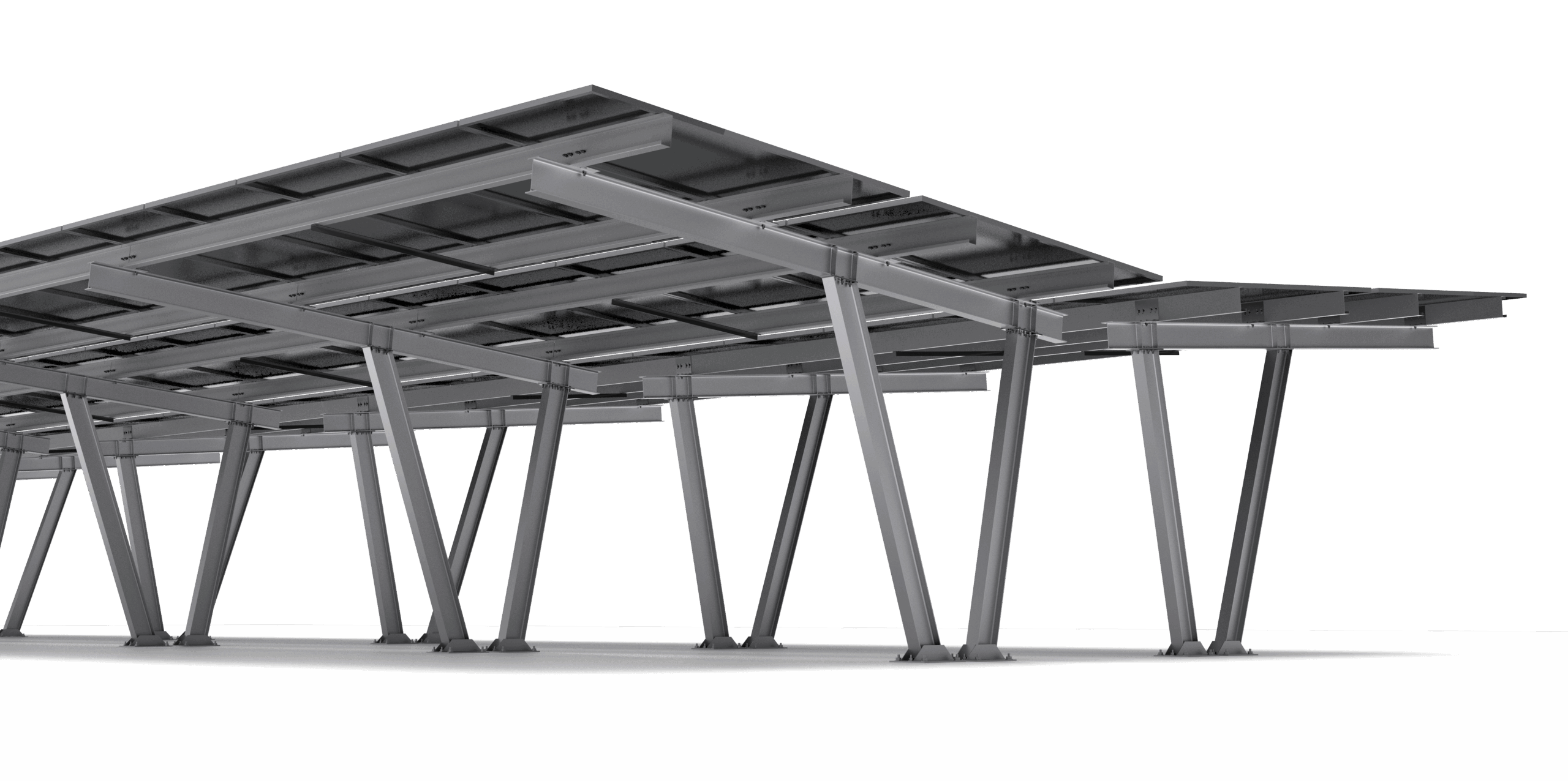 ParkSmarT solar carports are engineered steel canopy systems designed to provide shade for any type of parking areas and pedestrian zones while supporting high-efficiency photovoltaic modules for clean solar energy generation.